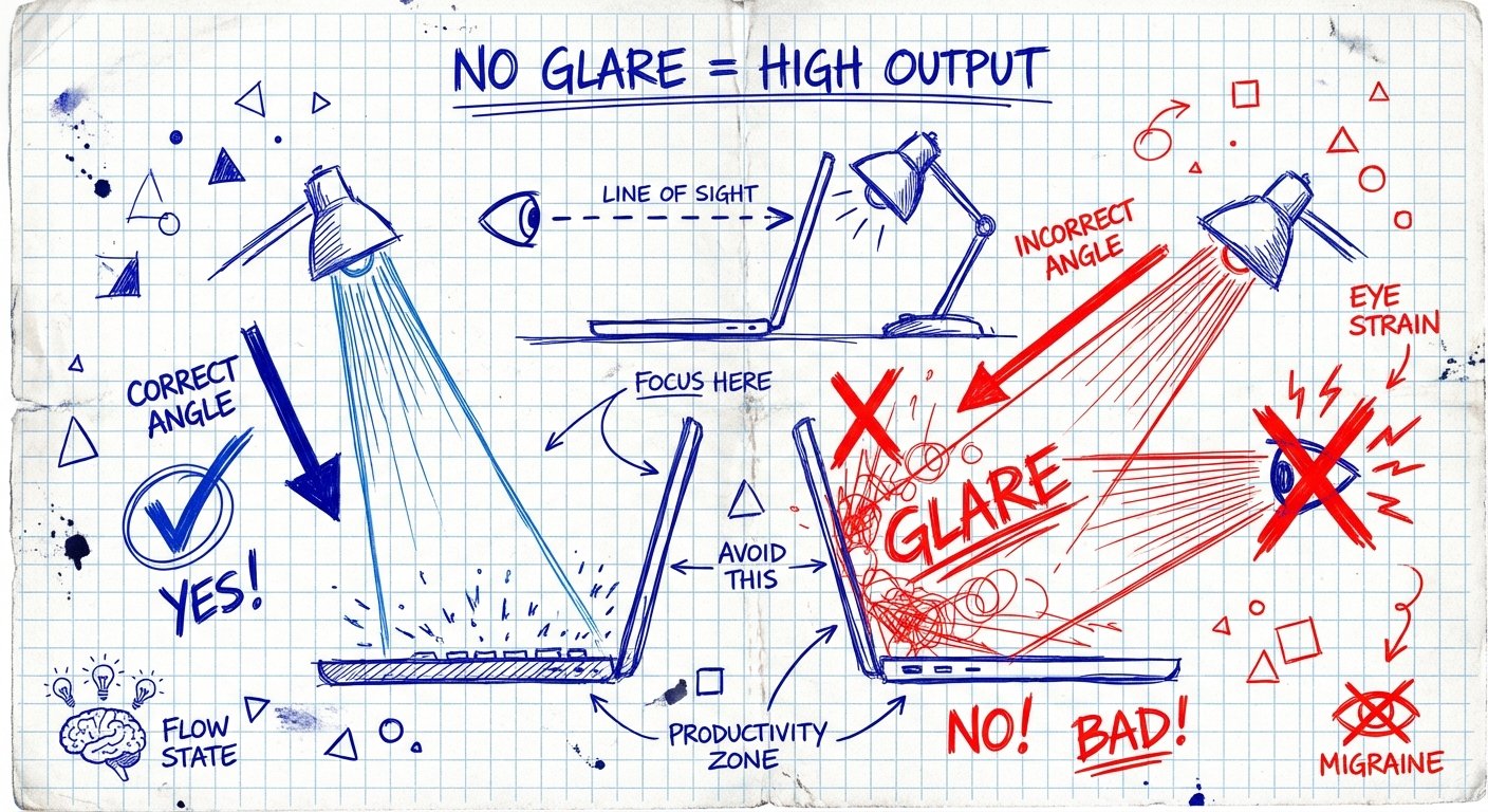 - Asymmetrical Optical Design: This is non-negotiable. The light must hit the keyboard, not the screen. If it hits the screen, you get glare. Glare equals fatigue.
