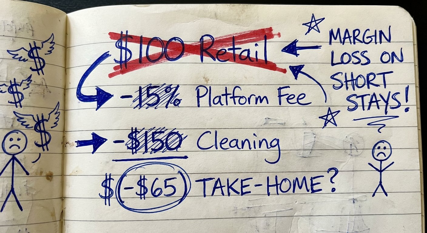 If a host lists an apartment for $100 a night, they do not get $100. They get $80. Then they have to pay for cleaning. Then they pay for electricity, water, and internet. Then they pay taxes.