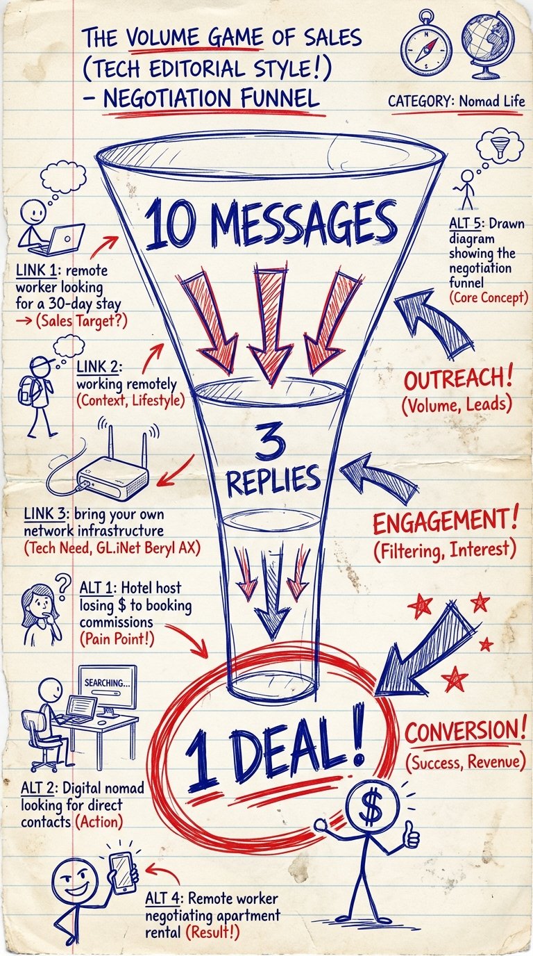 If you message one host, make a lowball offer, and they say no, you failed. Not because the strategy doesn’t work, but because your volume was pathetic.