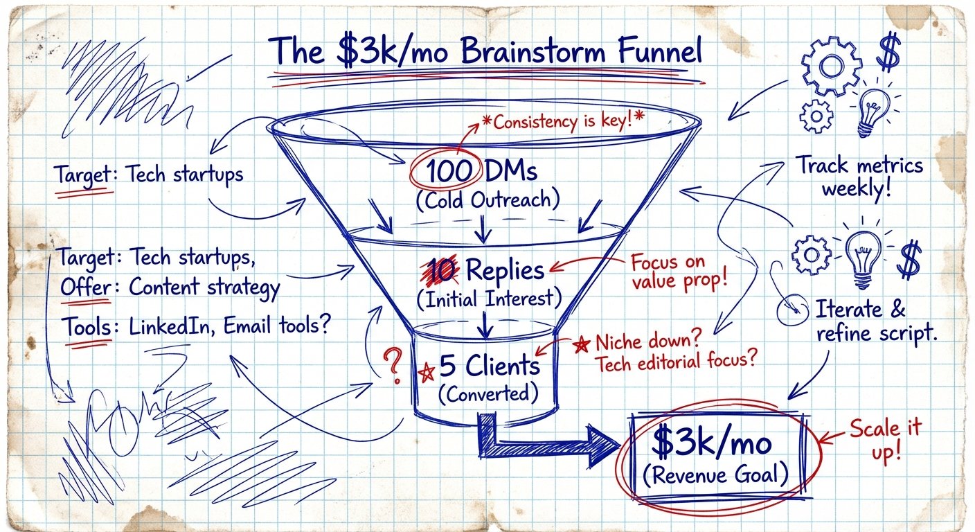 You have no reputation. You have no portfolio. You cannot rely on “inbound leads.” You have to hunt.