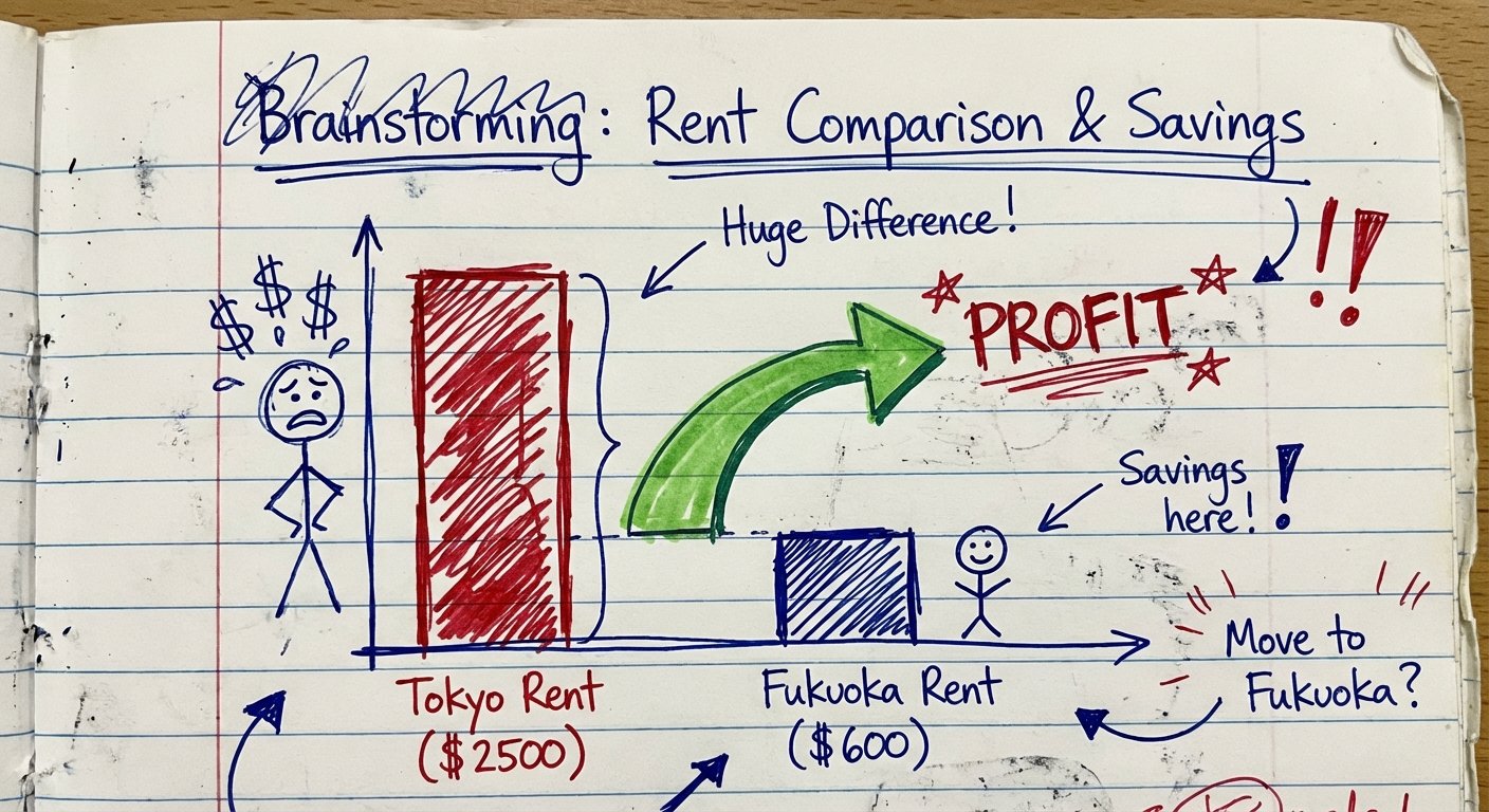 The logic is simple. In Tokyo, you commute for an hour. In Fukuoka, you walk to the coworking space in 10 minutes.