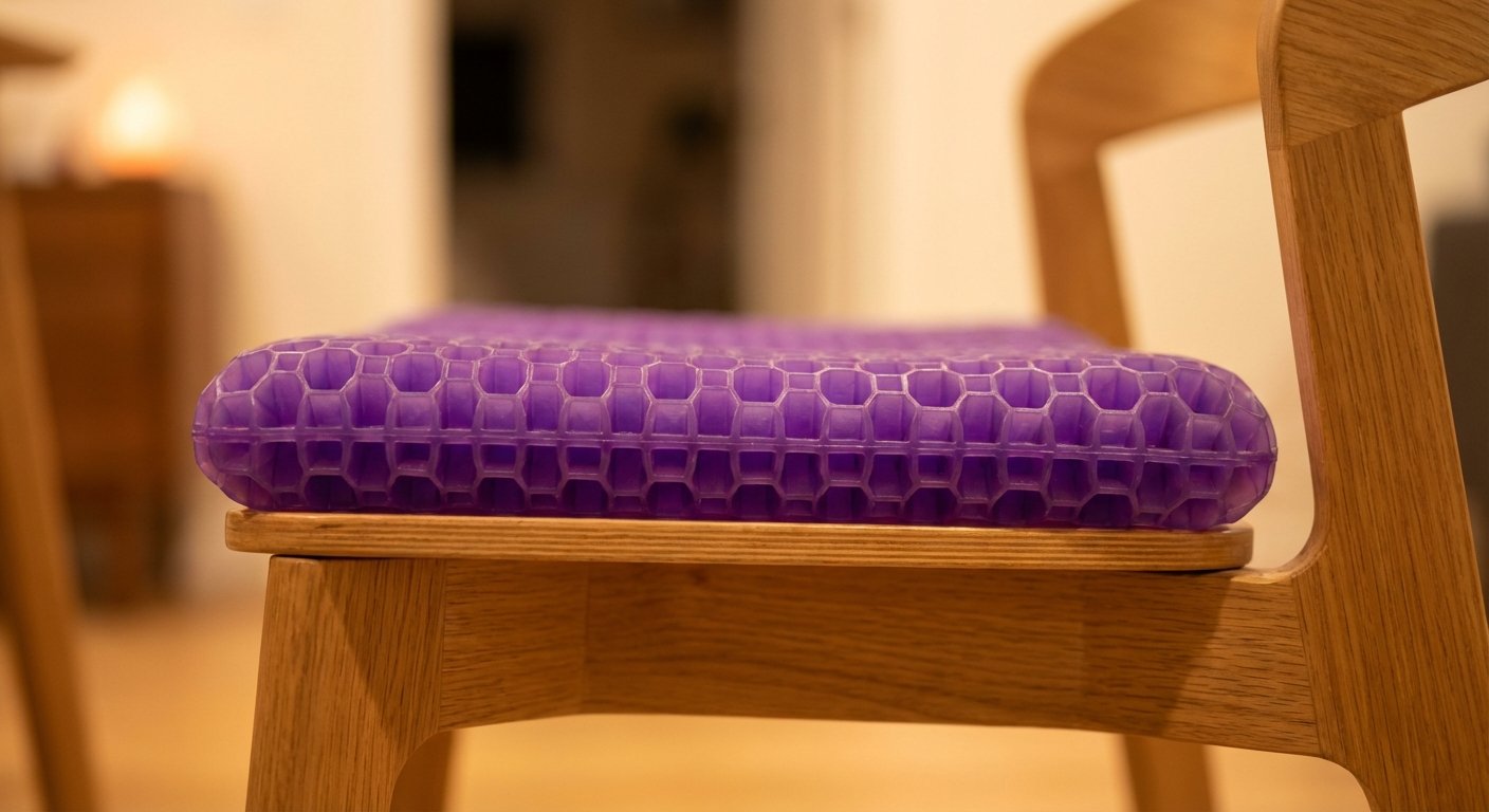 The Purple Solution: The grid collapses under pressure points (your sit bones) but stays firm everywhere else. It allows air to flow through it. You do not get “swamp ass.”