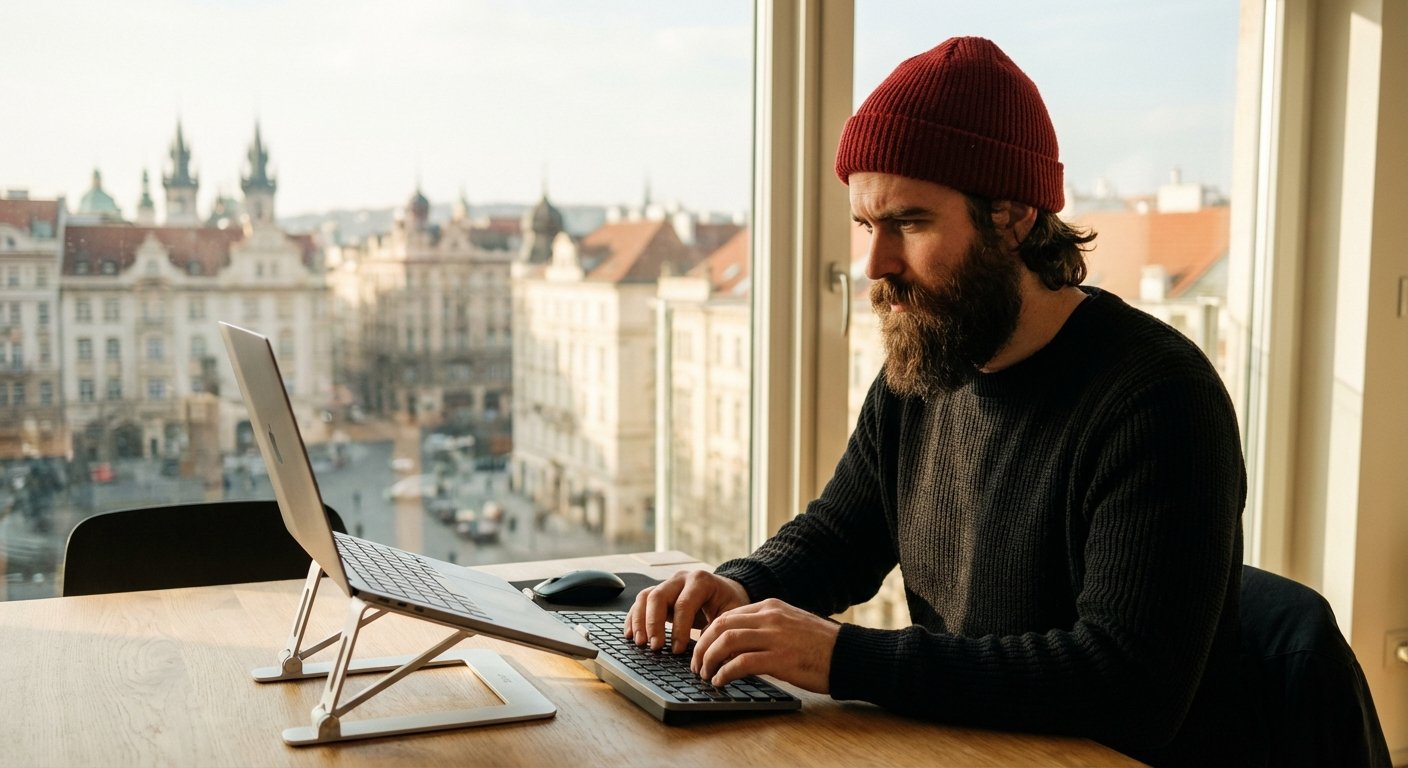 They sit at a kitchen table. They hunch over a 13-inch laptop screen. Their neck is bent at a 45-degree angle. After four hours, their back hurts. Their focus breaks. They stop working.