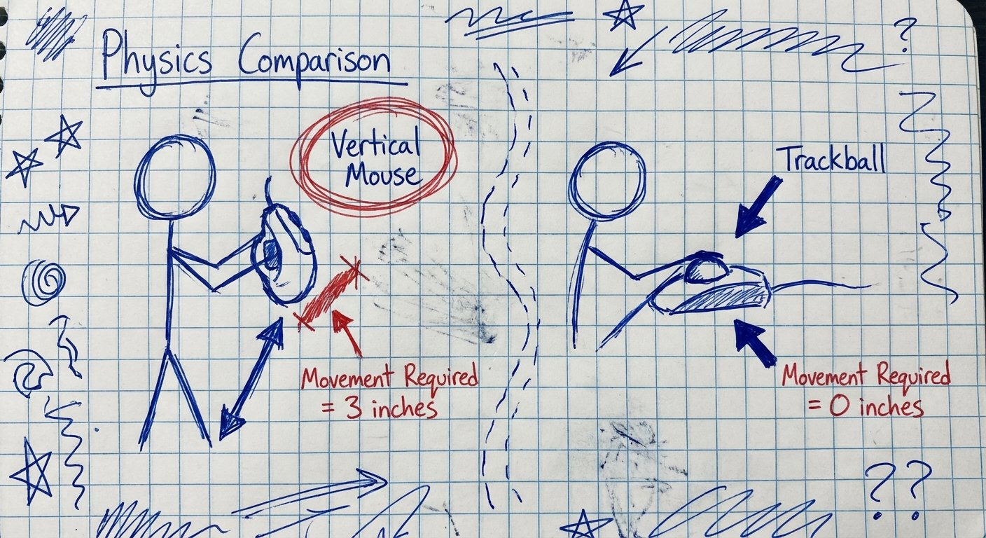 If you are editing video, coding, or managing spreadsheets in tight quarters, the trackball wins. It is not a preference. It is geometry.
