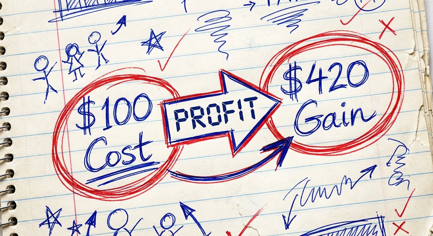 Minus the $100 mouse cost = **$320 Net Profit.**