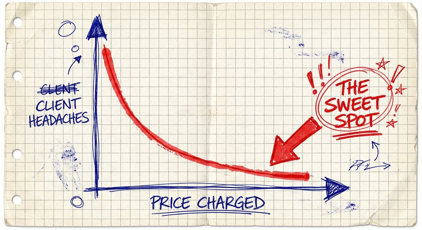 When you charge $15/hour, you attract the client who micromanages you. They count every minute. They dispute hours. They are terrified of losing $15.